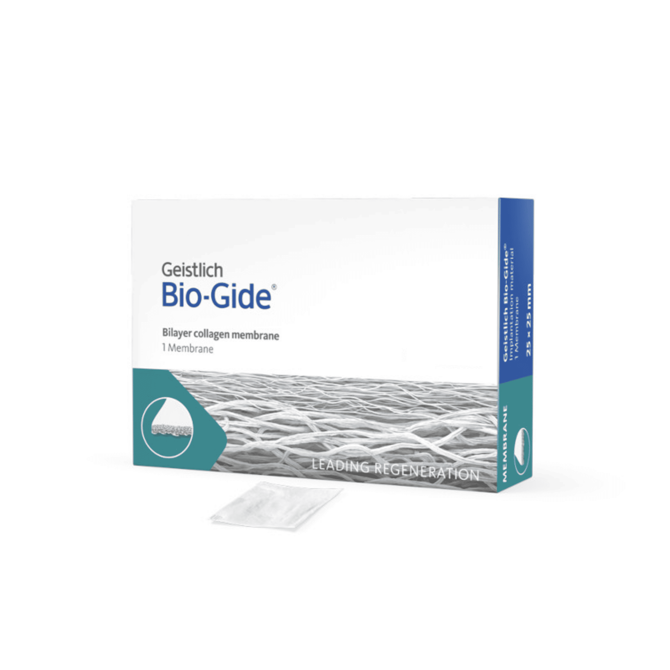 A Membrana Geistlich Bio-Gide 25x25mm é uma solução de colágeno suíno nativo, projetada para procedimentos de Regeneração Óssea Guiada (ROG) e regeneração periodontal. Sua estrutura reabsorvível e altamente biocompatível garante uma barreira eficaz para o espaço de regeneração, enquanto sua composição de colágeno suporta a cicatrização e a formação de novo tecido ósseo. Com dimensões ampliadas, é versátil para áreas maiores de defeito.